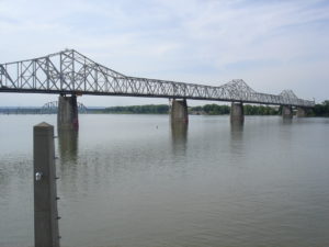 (3) The George Rogers Clark Memorial Bridge is a four-lane bridge crossing the Ohio River between Louisville, Kentucky and Jeffersonville, Indiana.