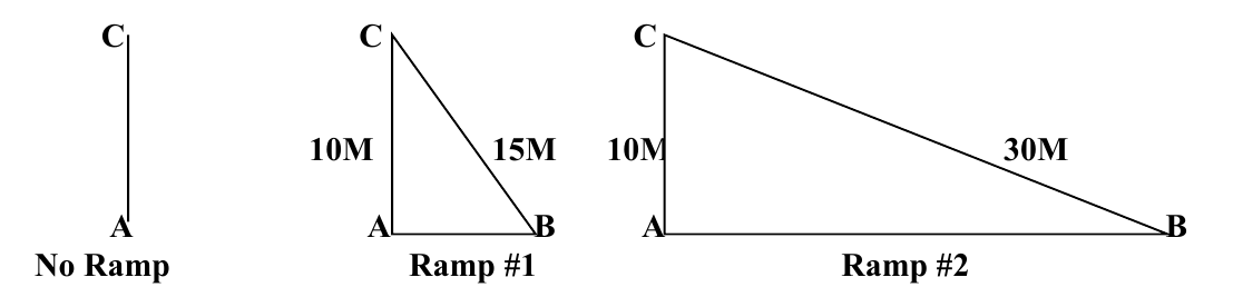 • Question 6 of 10 (write the question and answer)  Which ramp would take less effort (force) to  push an object up up?